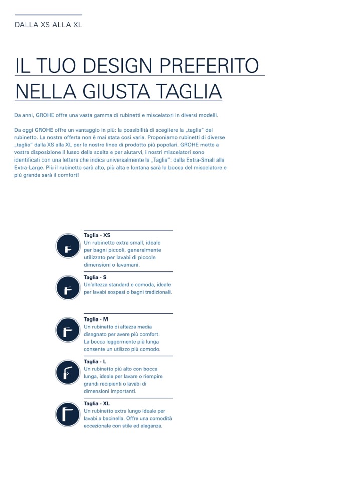 „taglie“ dalla XS alla XL per le nostre linee di prodotto più popolari. GROHE mette a
