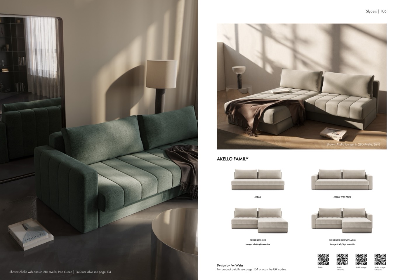 Shown: Akello with arms in 281 Avella, Pine Green | Tin Drum table see page 134