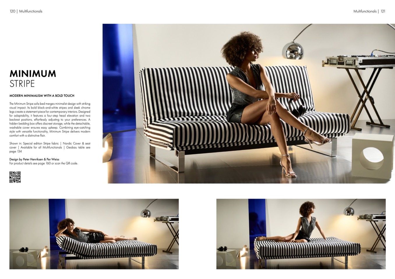 The Minimum Stripe sofa bed merges minimalist design with striking