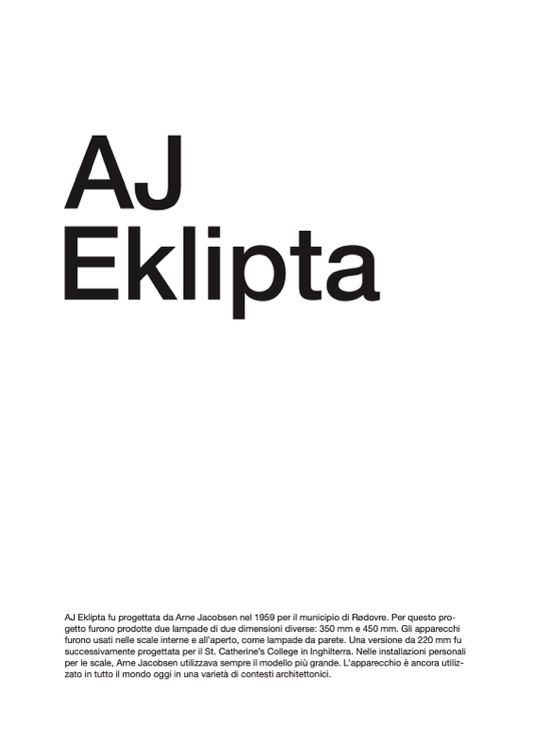 AJ Eklipta fu progettata da Arne Jacobsen nel 1959 per il municipio di Rødovre. Per questo pro-