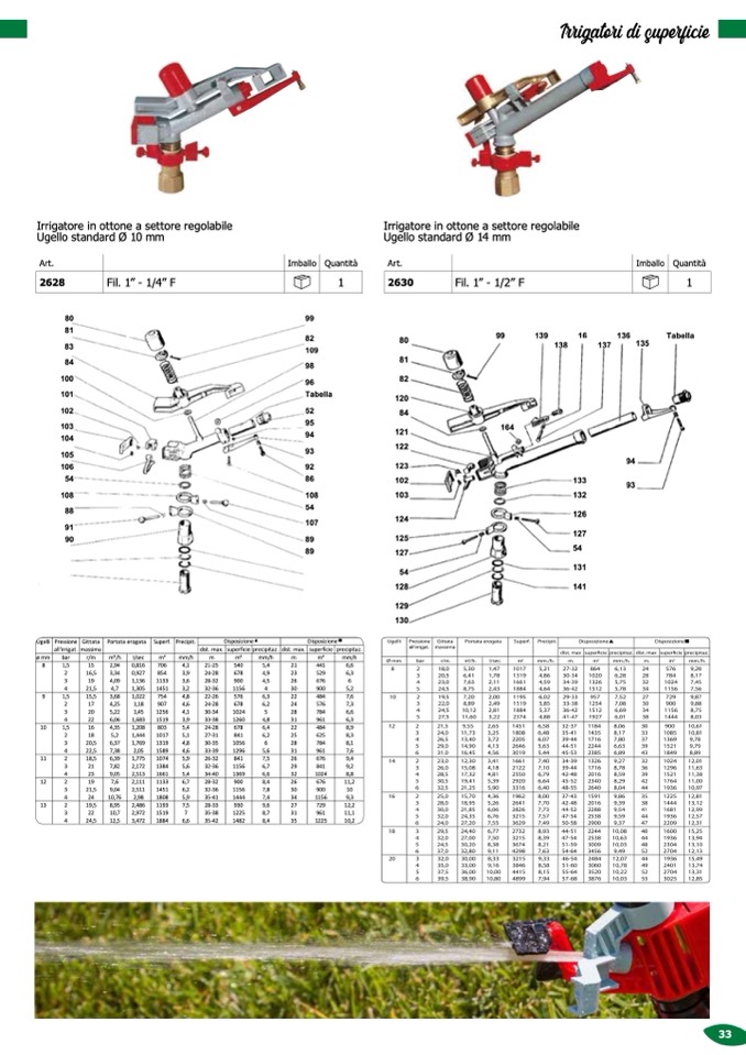 Irrigatore in ottone a settore regolabile