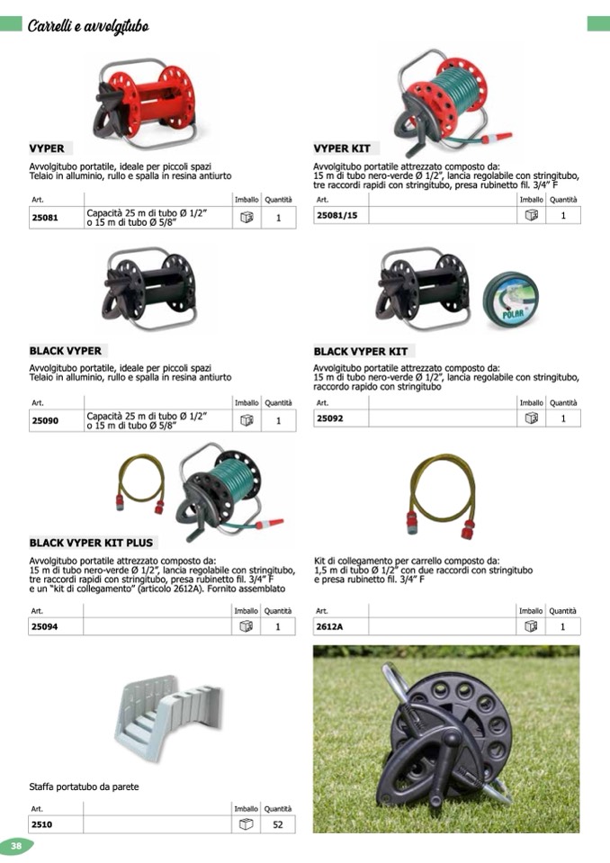 15 m di tubo nero-verde Ø 1/2”, lancia regolabile con stringitubo,