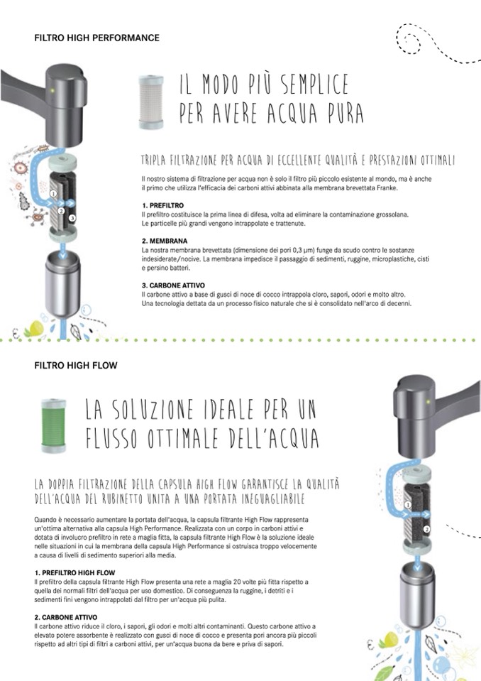 rispetto ad altri tipi di filtri a carboni attivi, per un‘acqua buona da bere e priva di sapori.