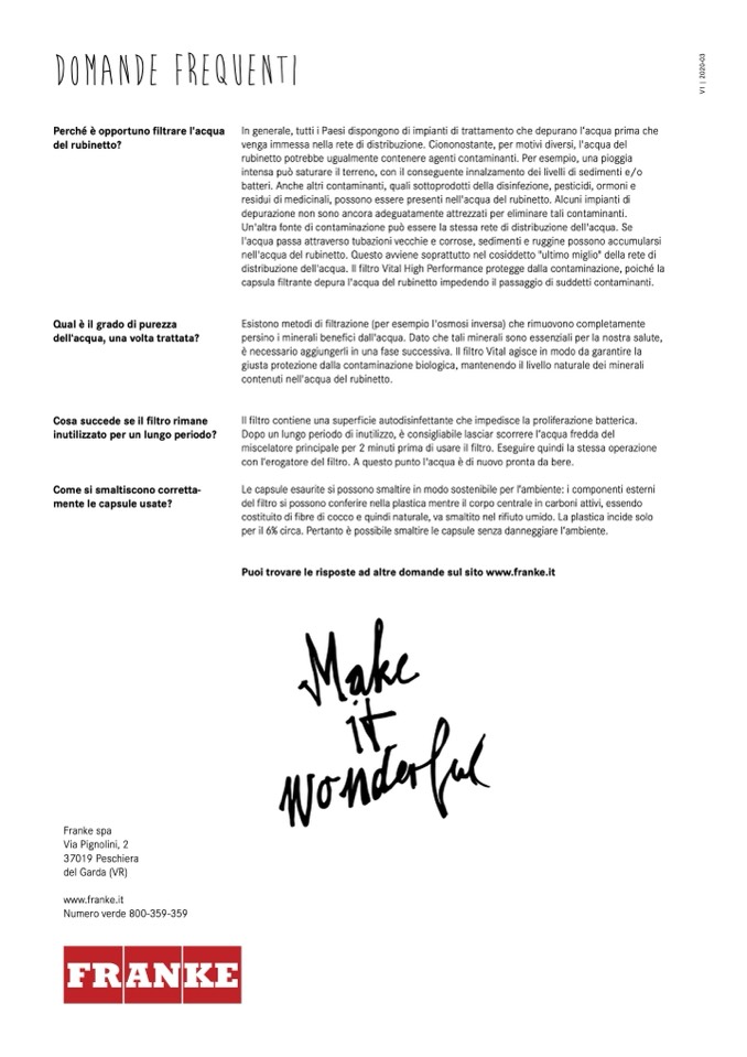 distribuzione dell'acqua. Il filtro Vital High Performance protegge dalla contaminazione, poiché la