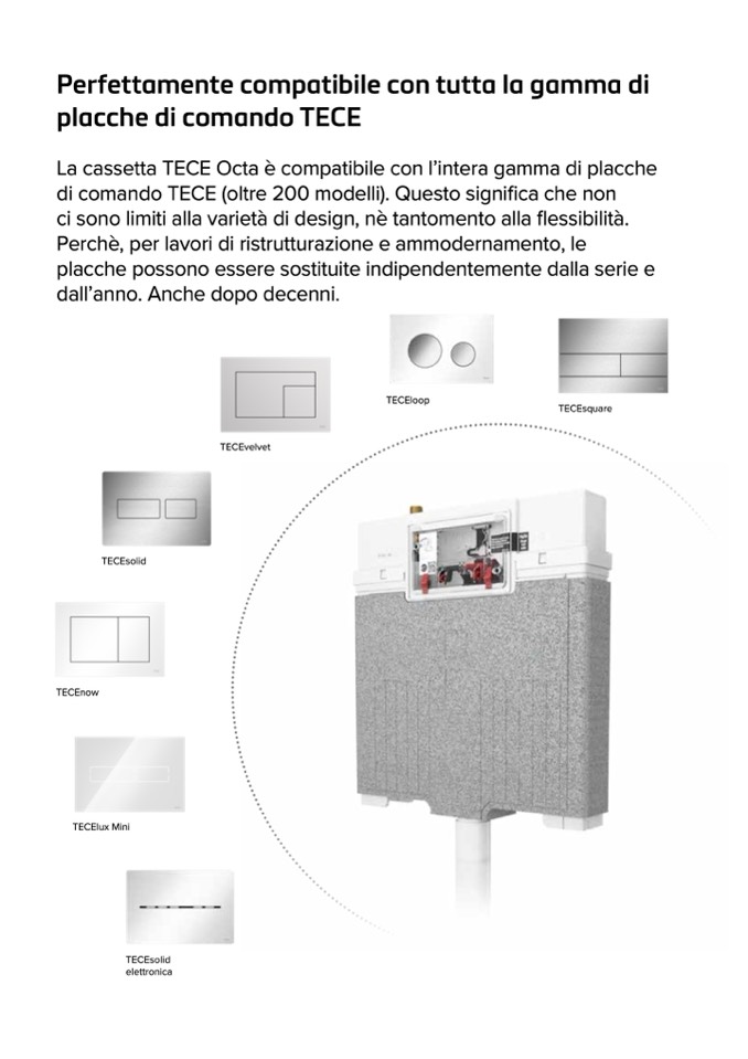 La cassetta TECE Octa è compatibile con l’intera gamma di placche