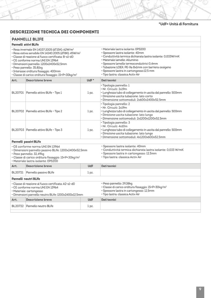 • Dimensioni pannello neutro BLife: 1200x2400x12,5mm