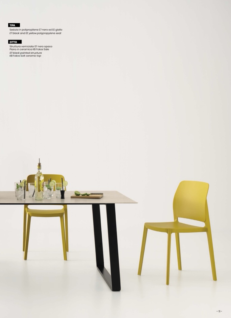 Seduta in polipropilene E7 nero ed EE giallo