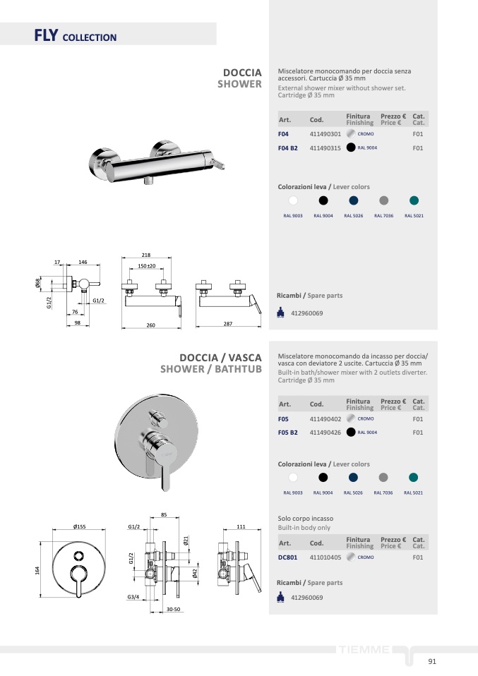 Miscelatore monocomando per doccia senz