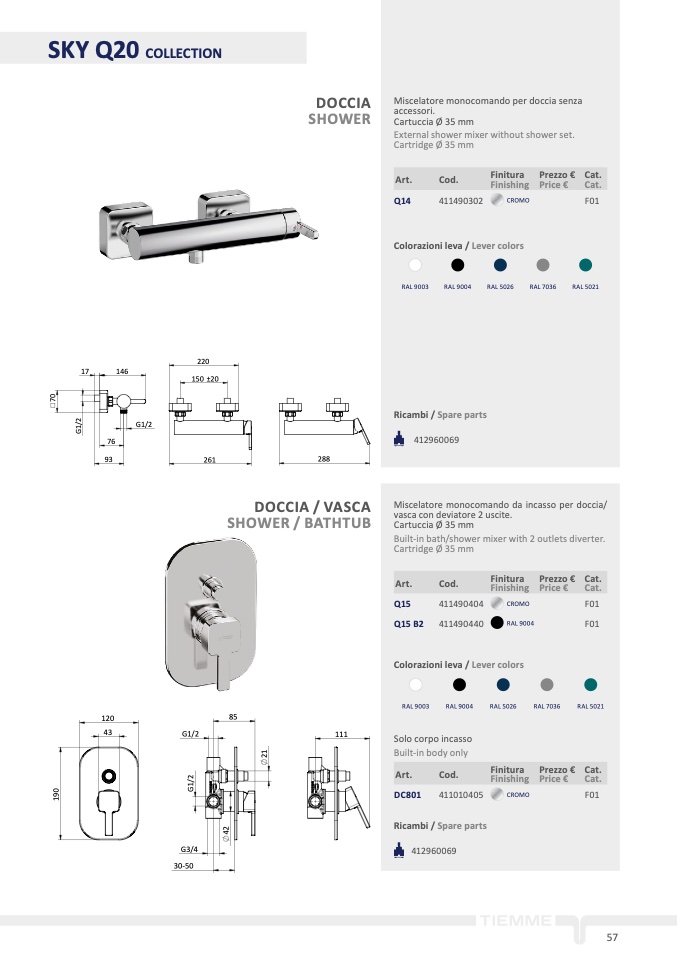 Miscelatore monocomando per doccia senz