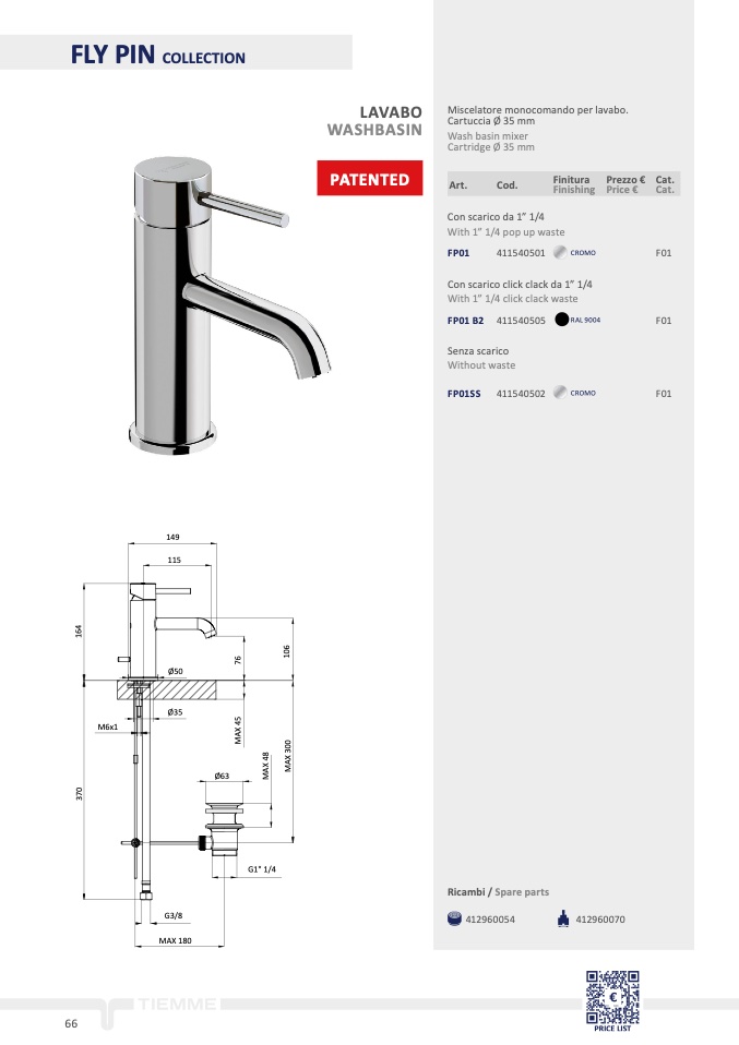 Miscelatore monocomando per lavabo.