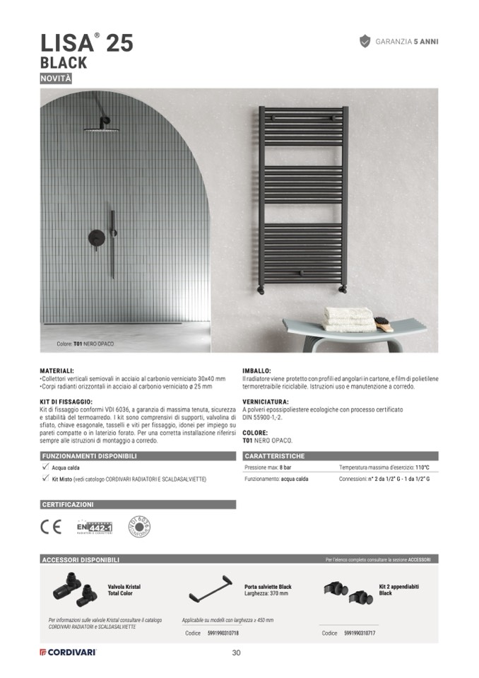 e stabilità del termoarredo. I kit sono comprensivi di supporti, valvolina di
