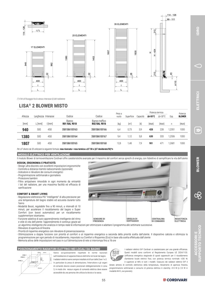 è superiore al 46% in tutti i modelli. Ciascuno dei radiatori elettrici ErP