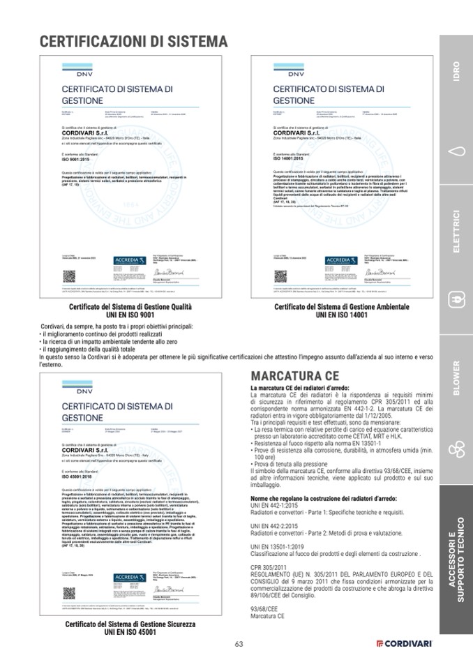 In questo senso la Cordivari si è adoperata per ottenere le più significative certificazioni che attestino l’impegno assunto dall’azienda al suo interno e verso