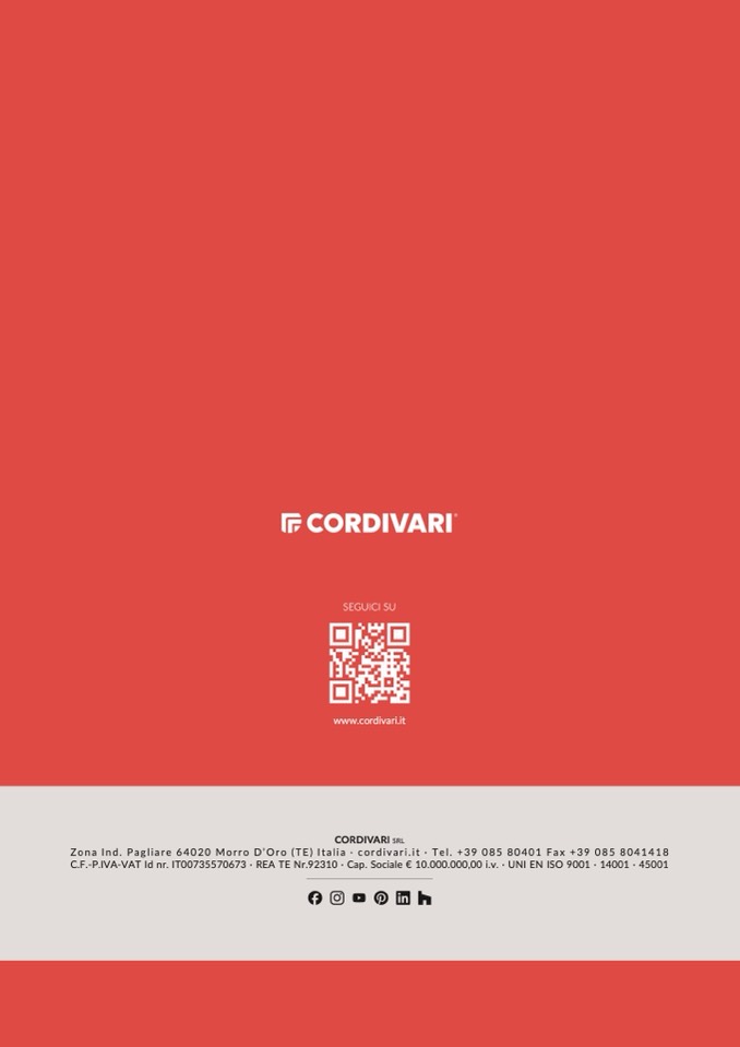 Zona Ind. Pagliare 64020 Morro D’Oro (TE) Italia · cordivari.it · Tel. +39 085 80401 Fax +39 085 8041418