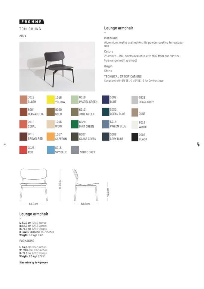 H (seat): 40.0 cm I 15.7 inches