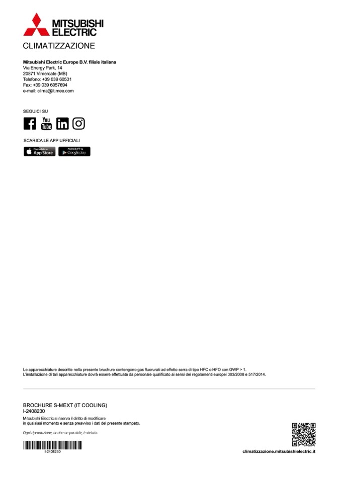 Le apparecchiature descritte nella presente bruchure contengono gas fluorurati ad effetto serra di tipo HFC o HFO con GWP > 1.