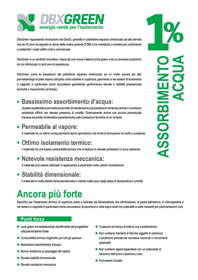 DbxGreen rappresenta l’evoluzione del Dbx35, pannello in polistirene espanso sinterizzato ad alta densità