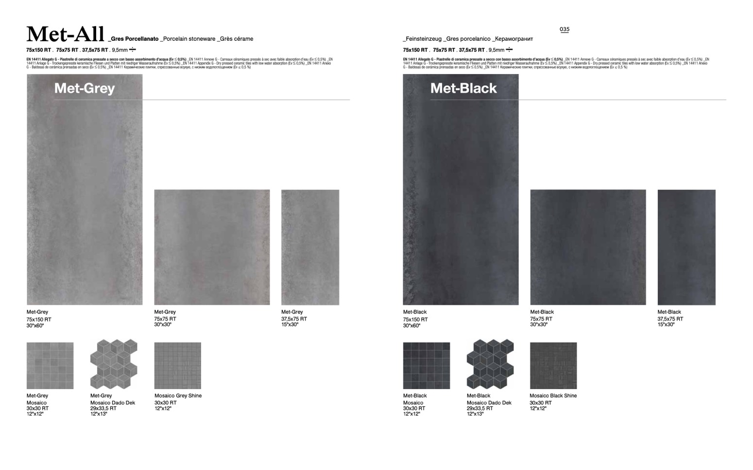 75x150 RT . 75x75 RT . 37,5x75 RT . 9,5mm