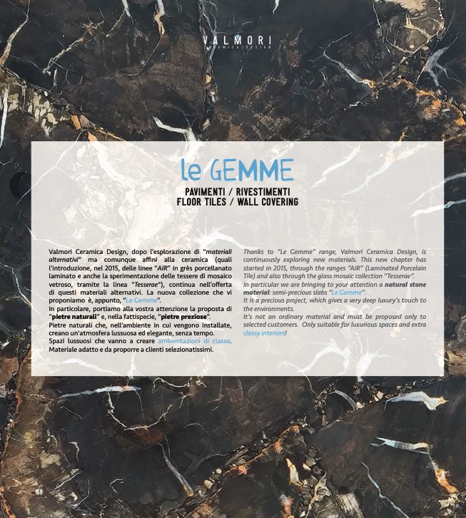 Thanks to “Le Gemme” range, Valmori Ceramica Design, is