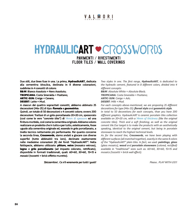 alla cementina idraulica, declinata in 8 diverse colorazioni,