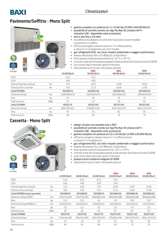 • gamma completa con potenze da 3,5 a 16 kW (da 12.000 a 60.000 Btu/h)