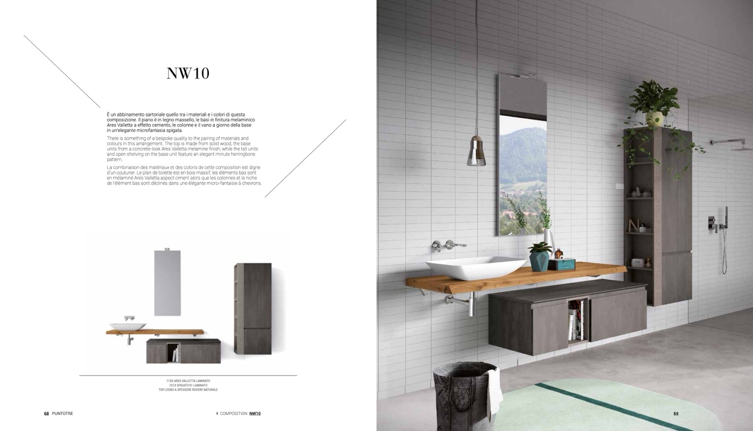 de l’élément bas sont déclinés dans une élégante micro-fantaisie à chevrons.