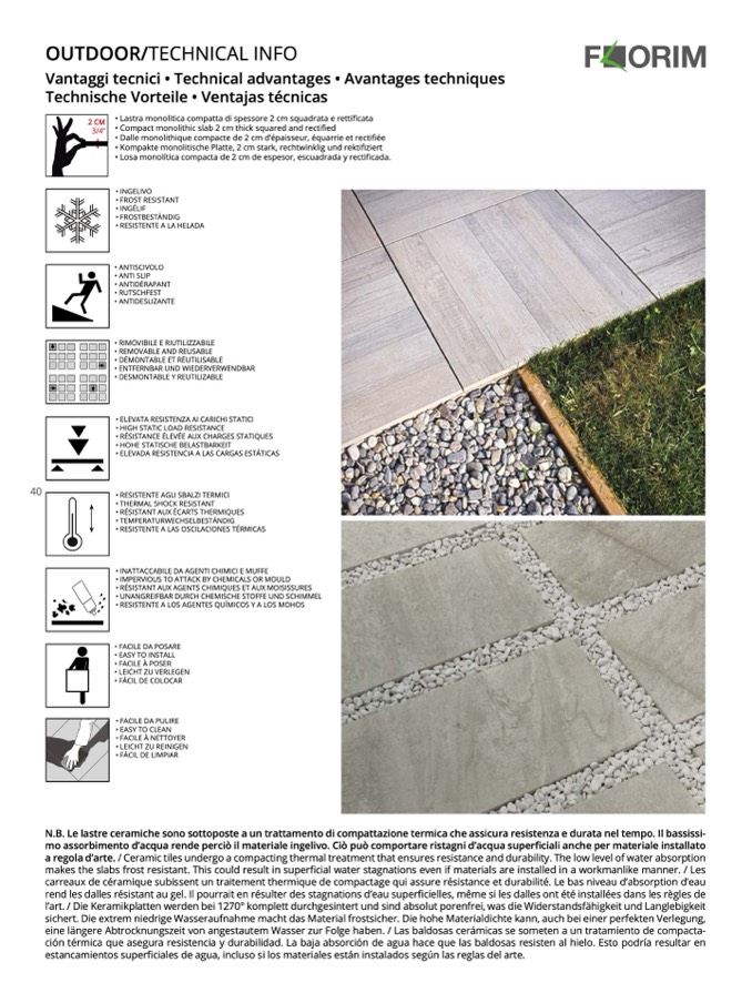 N.B. Le lastre ceramiche sono sottoposte a un trattamento di compattazione termica che assicura resistenza e durata nel tempo. Il bassissi-