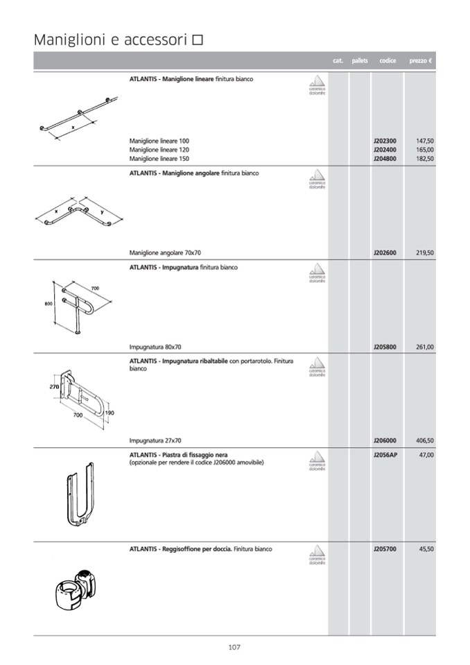 ATLANTIS - Impugnatura ribaltabile con portarotolo. Finitura