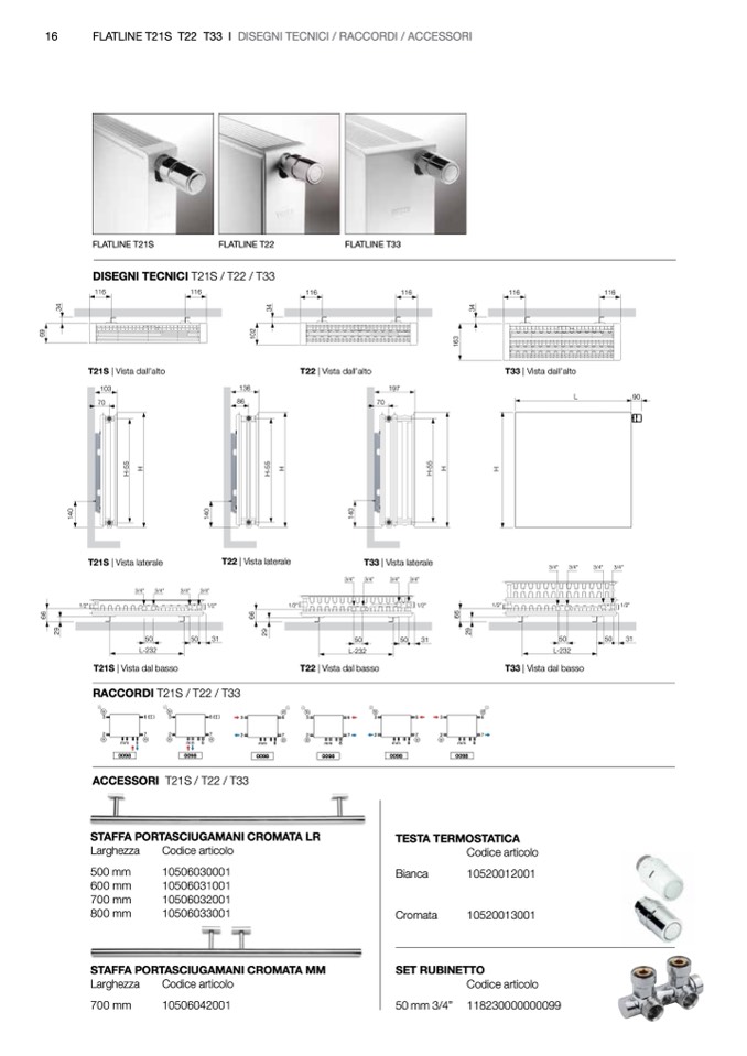 FLATLINE T21S T22 T33 I DISEGNI TECNICI / RACCORDI / ACCESSORI