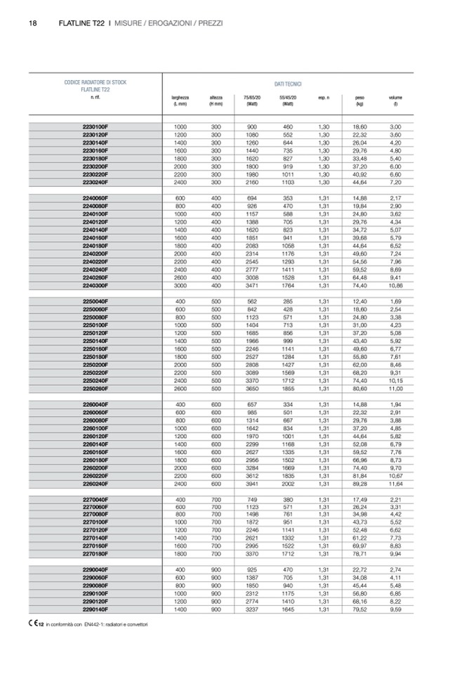 FLATLINE T22 I MISURE / EROGAZIONI / PREZZI