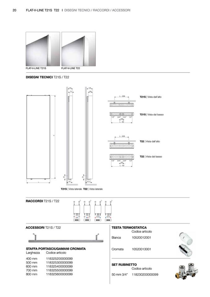 FLAT-V-LINE T21S T22 I DISEGNI TECNICI / RACCORDI / ACCESSORI