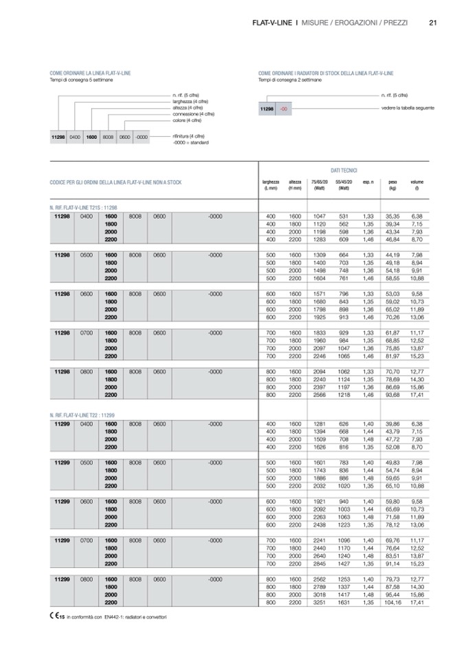 15 in conformità con EN442-1: radiatori e convettori