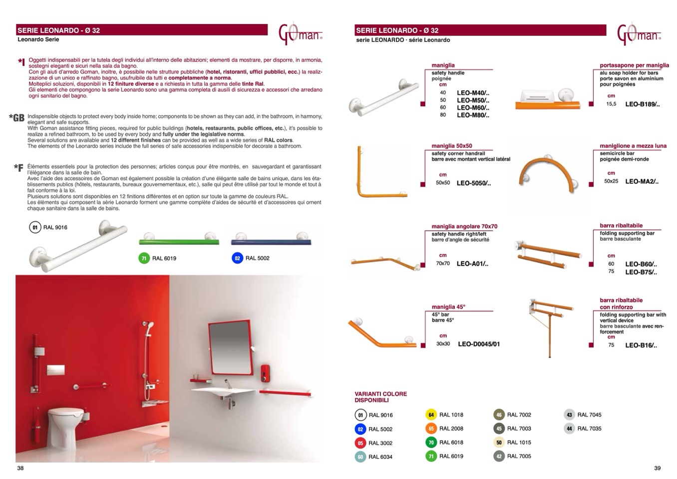 Gli elementi che compongono la serie Leonardo sono una gamma completa di ausili di sicurezza e accessori che arredano
