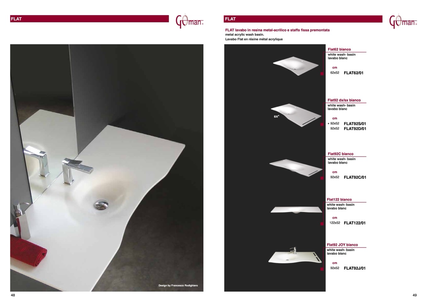 FlAt lavabo in resina metal-acrilico e staffa fissa premontata