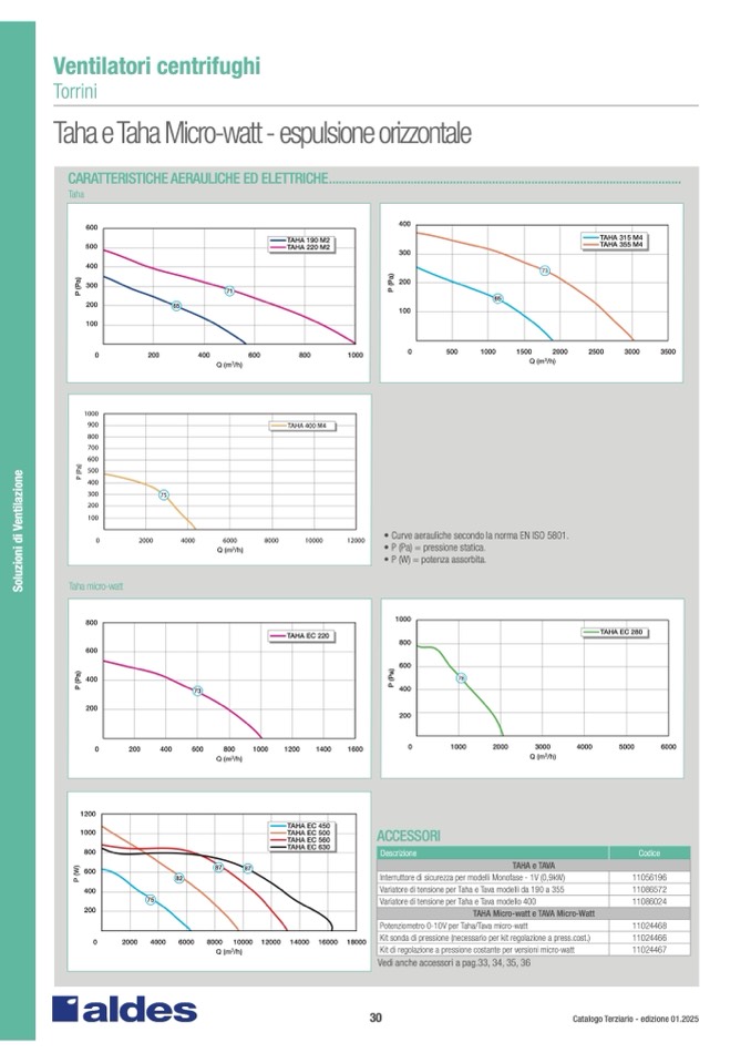 • Curve aerauliche secondo la norma EN ISO 5801.