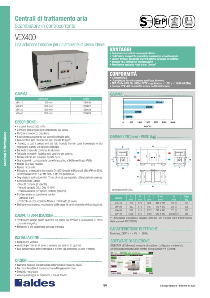 caratteristiche tecniche delle centrali di ventilazione VEX (Everest)