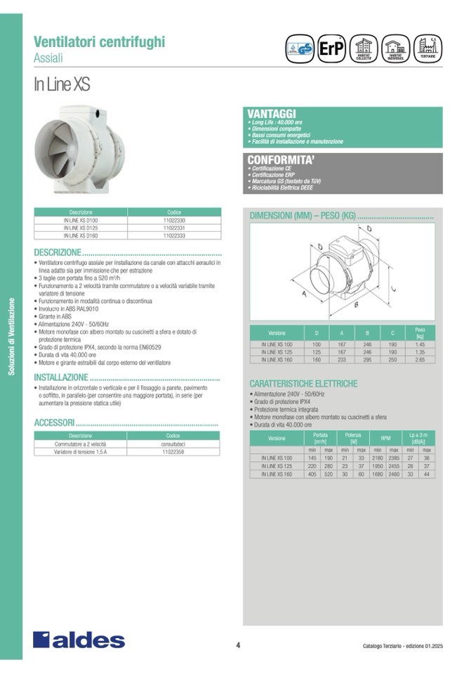 • Ventilatore centrifugo assiale per installazione da canale con attacchi aeraulici i