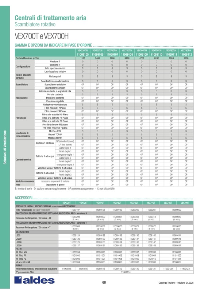 S: fornito di serie - O: opzione senza maggiorazione - OP: opzione a pagamento - X: non disponibil
