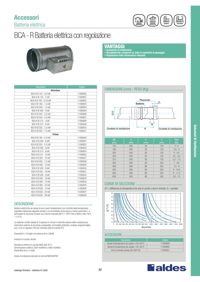 Batterie elettrciche da canale di pre e post riscaldamento con controllo della temperatur