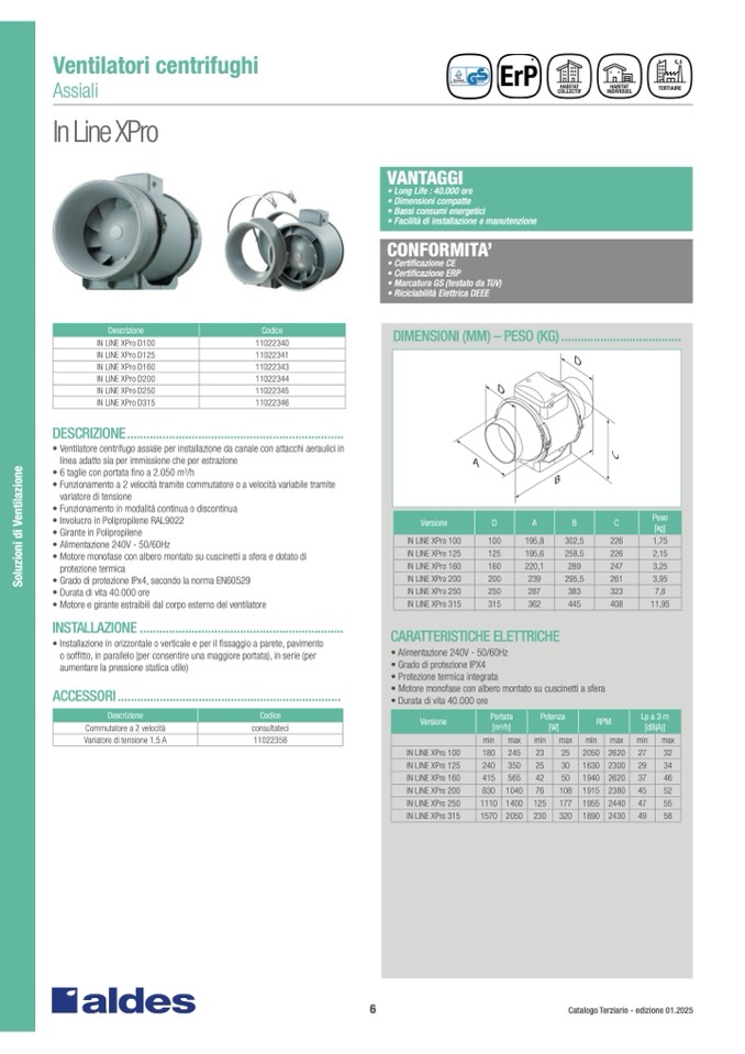 • Ventilatore centrifugo assiale per installazione da canale con attacchi aeraulici in