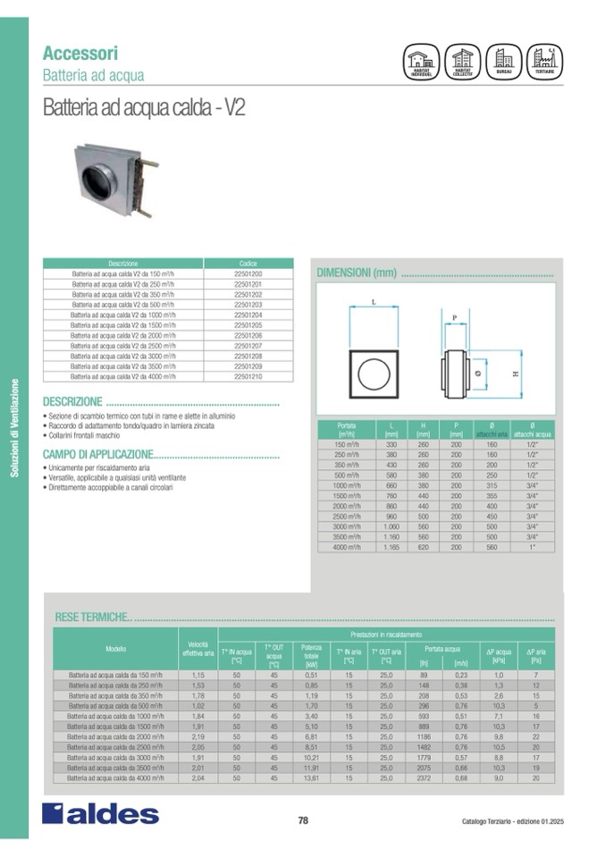 • Sezione di scambio termico con tubi in rame e alette in alluminio