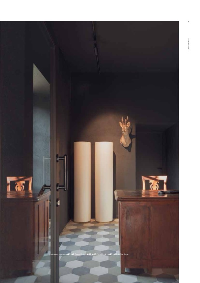 Pavimento tappeto ART. A7 Dove Gray + ART. A17 Pitch Black + ART. A10 White Rope