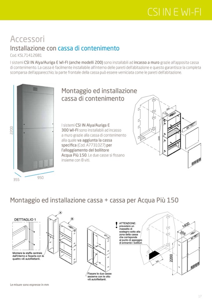 I sistemi CSI IN Alya/Auriga E WI-FI (anche modelli 200) sono installabili ad incasso a muro grazie all’apposita cassa