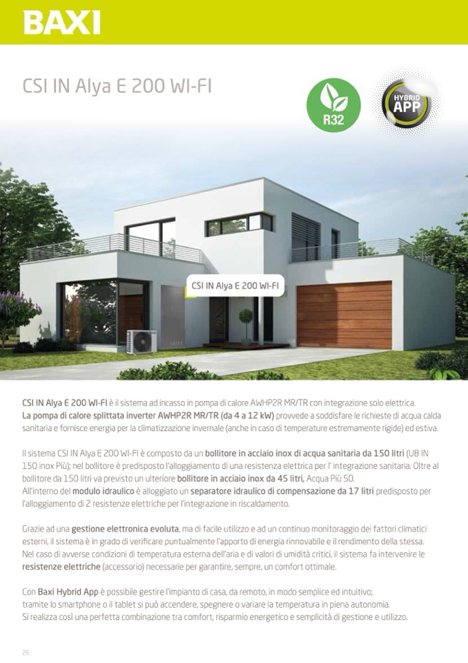 sanitaria e fornisce energia per la climatizzazione invernale (anche in caso di temperature estremamente rigide) ed estiva.