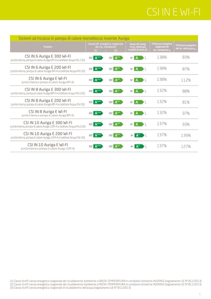 (1) Classe di effi cienza energetica stagionale del riscaldamento d’ambiente a BASSA TEMPERATURA in condizioni climatiche AVERAGE (regolamento UE N° 811/2013)