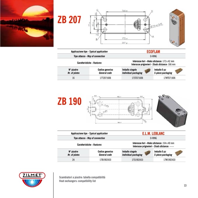 Heat exchangers: compatibility list