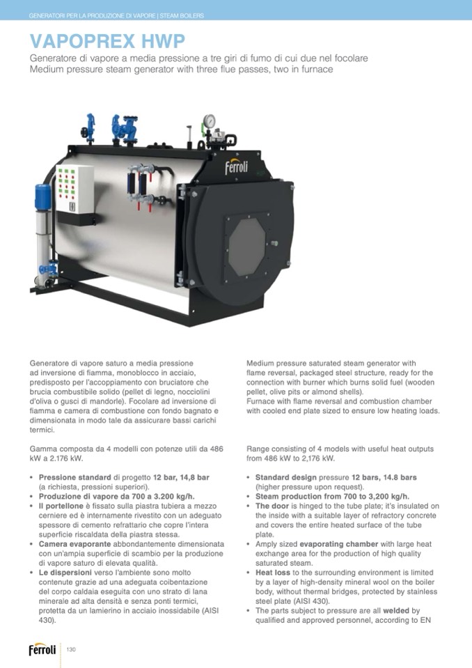• Produzione di vapore da 700 a 3.200 kg/h.
