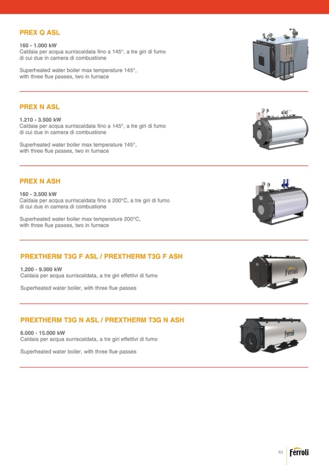Caldaia per acqua surriscaldata, a tre giri effettivi di fumo
