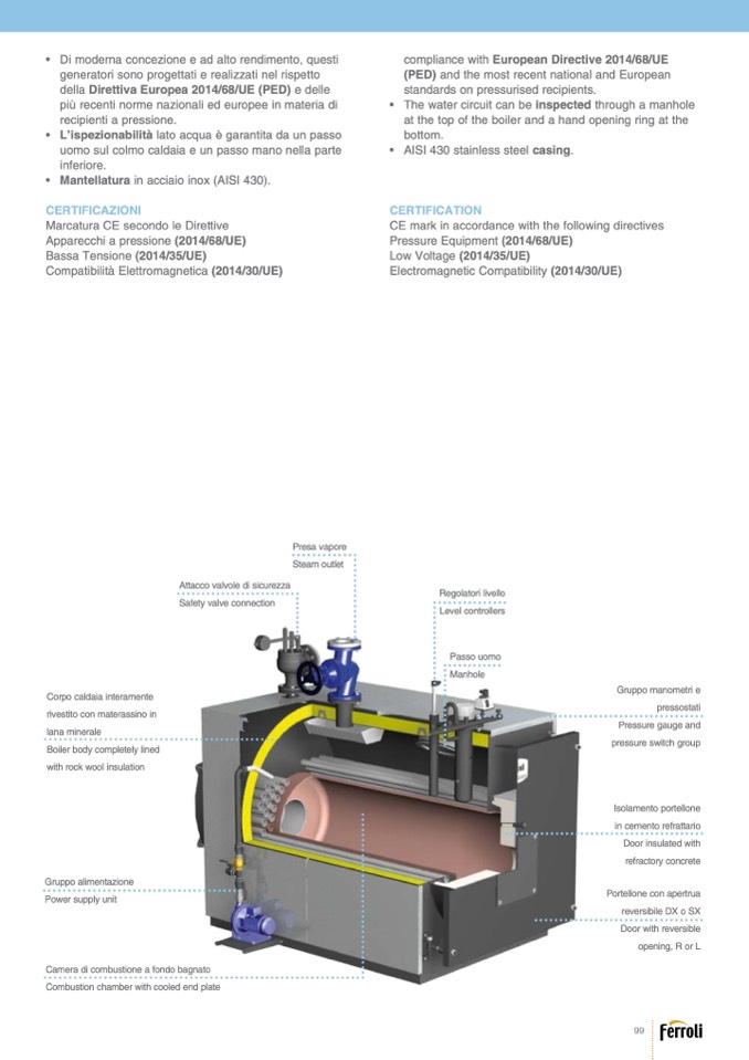 • Mantellatura in acciaio inox (AISI 430).