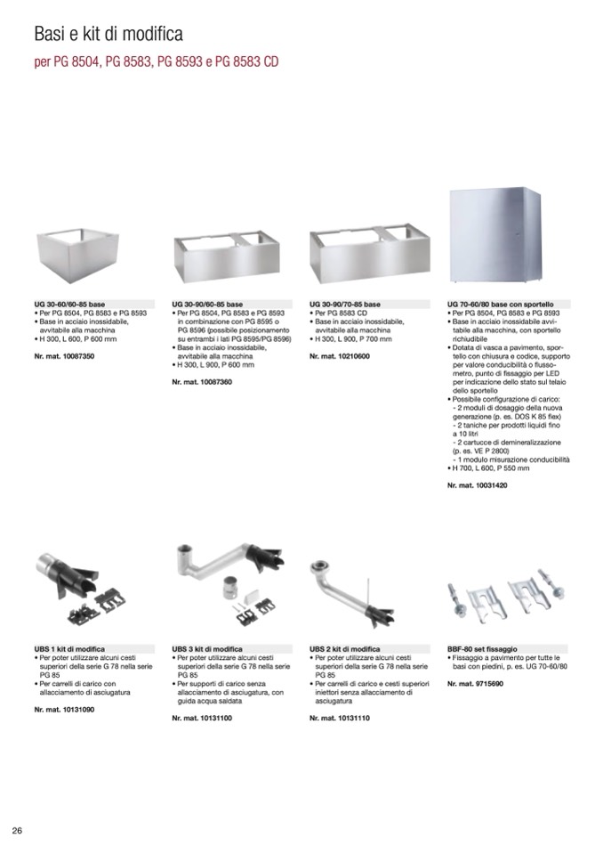basi con piedini, p. es. UG 70-60/80